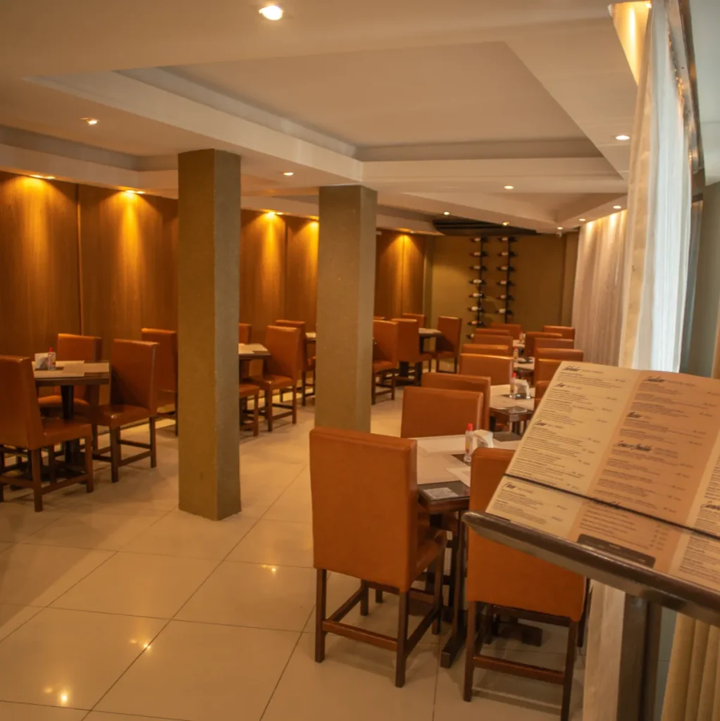 Para refeições completas, o restaurante do hotel serve almoço, jantar e room service, com pratos da culinária regional e internacional.